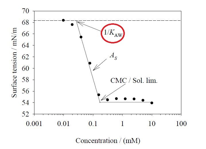 疏水性Kaw,真正表麵積As和臨界膠束濃度CMC與生物大分子(生物膜、蛋白) 相互作用和物質跨膜過程有關。每種分子有不同的體內壁壘,例如血腦屏障BBB和腸道壁。通常具有高表麵積As的分子沒有輔助的情況下很難穿透細胞膜(被動轉運)。